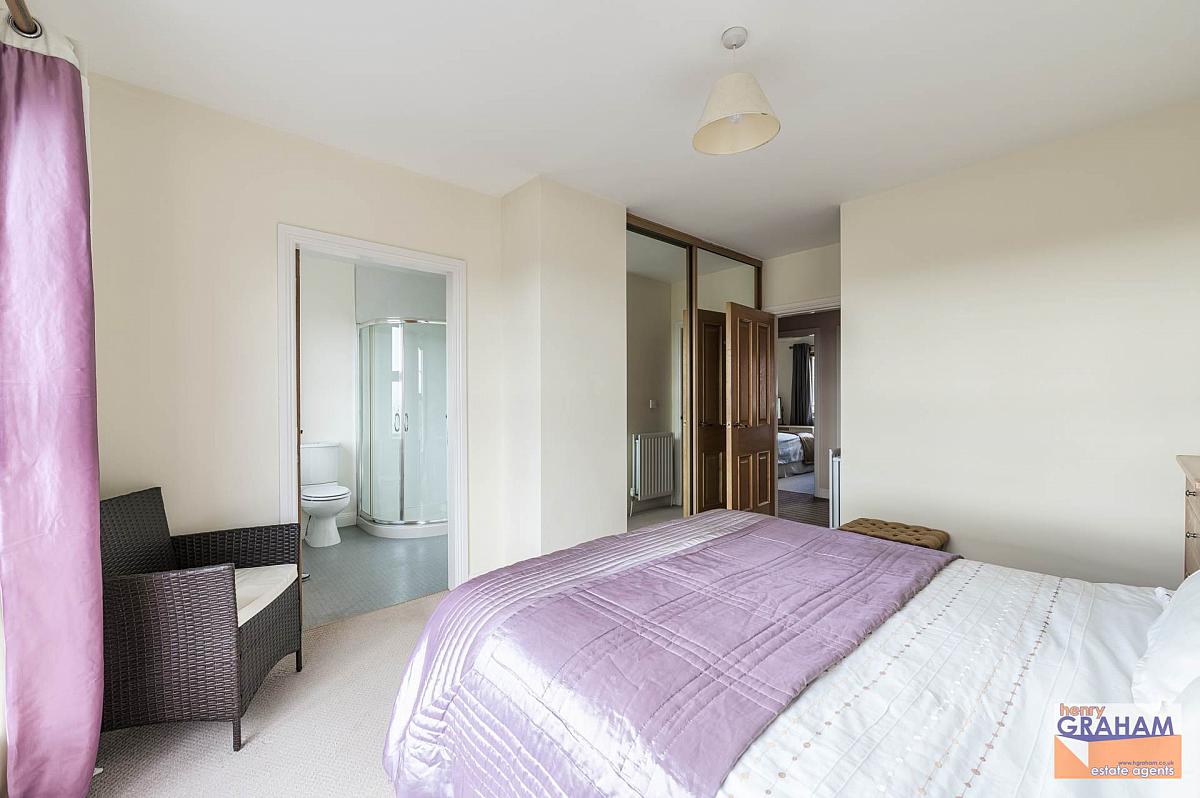 Built in robe with sliding mirror doors. Large window with panoramic views over Lisburn to include Slieve Croob and Mourne Mountains. Separate shower room/en-suite.
