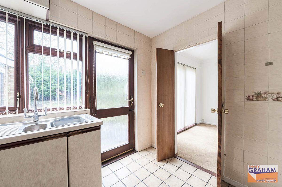 Range of high and low level units. Laminated worktops. Bowl and a half single drainer stainless steel sink unit. Mixer tap. Tiled floor. Tiled walls.