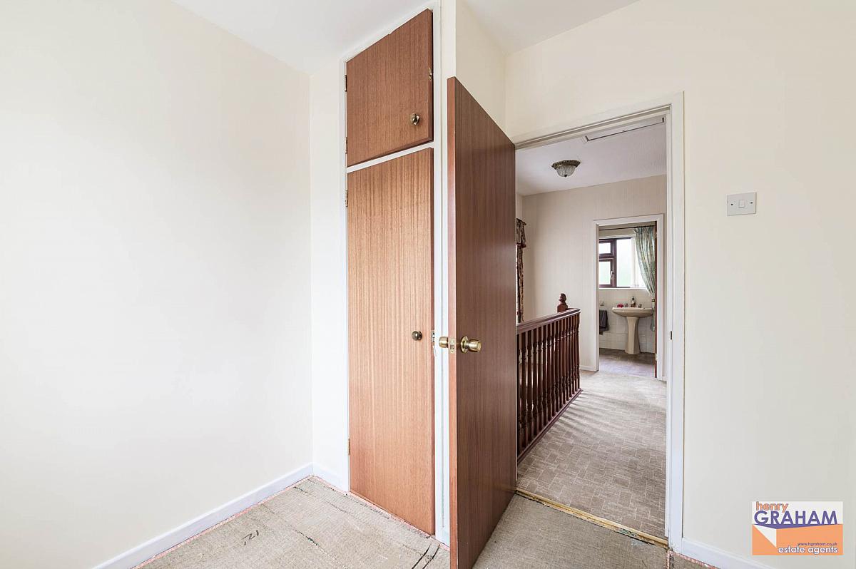 Composite entrance door with double glazed leaded and etched glass windows. Staircase with mahogany spindled balustrade. Built in cloaks storage cupboard.