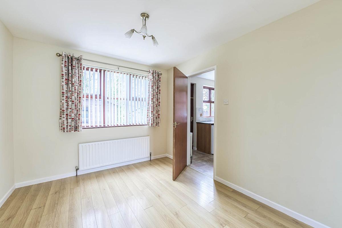 Range of high and low level units. Granite effect round edge work surfaces. Integrated oven and hob. Extractor unit. Single drainer stainless steel sink unit with mixer tap. Plumbed for washing machine. Part tiled walls. Panelled door to rear garden.