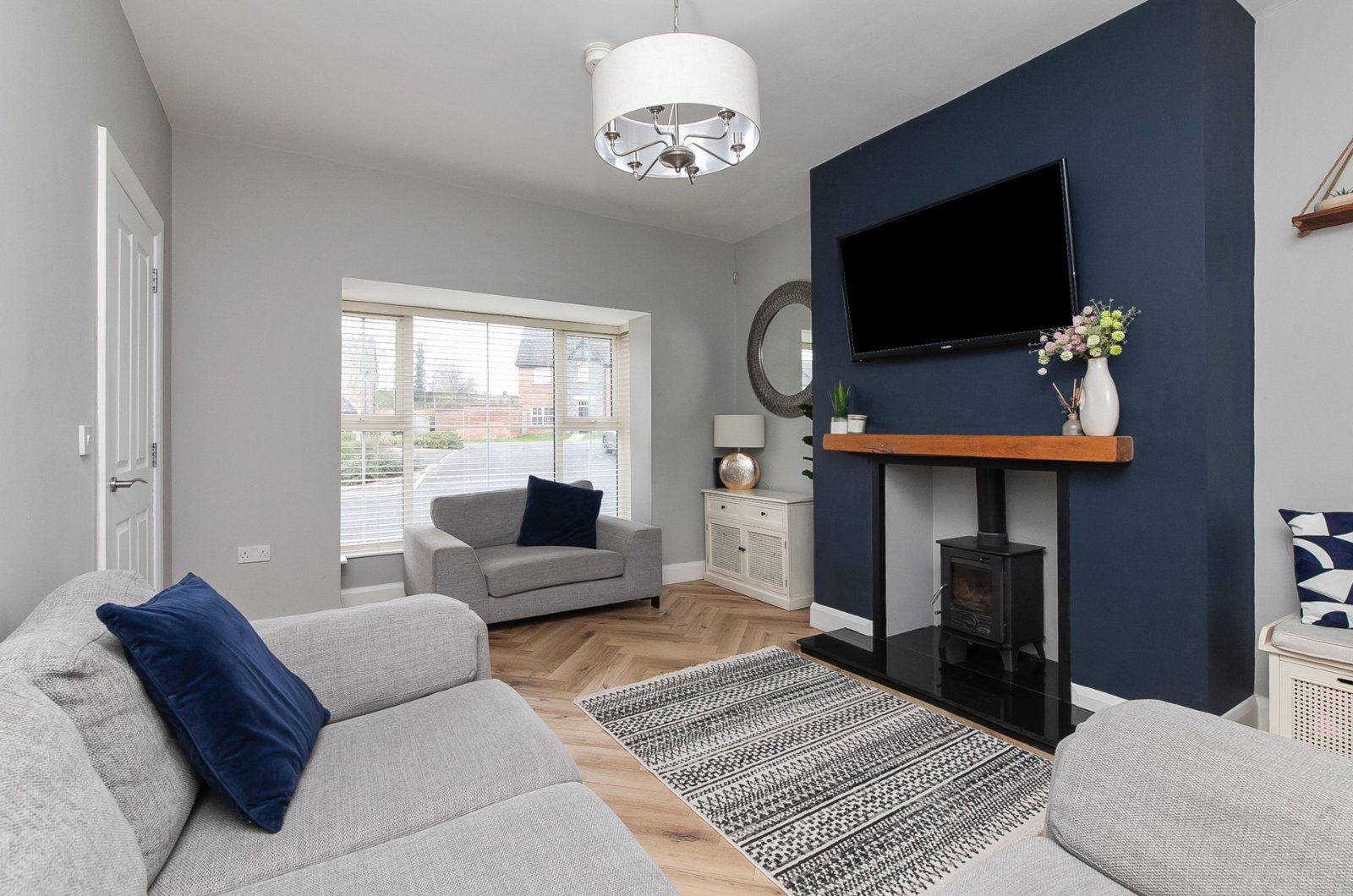 The accommodation comprises a generous living room with feature wood burning stove, luxurious kitchen with integrated appliances open to a family/dining room, ground floor WC, first floor family bathroom and three spacious bedrooms including principal with en suite. Of special note are the generous gardens featuring more space than others within the development and enjoying an enviable Southerly aspect.