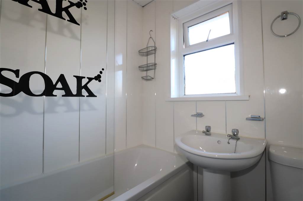 Family Bathroom with White Suite Comprising Panelled Bath with Shower Over, WC and Wash Handbasin