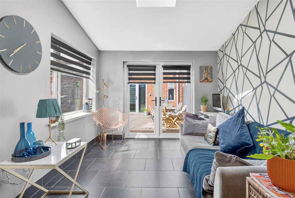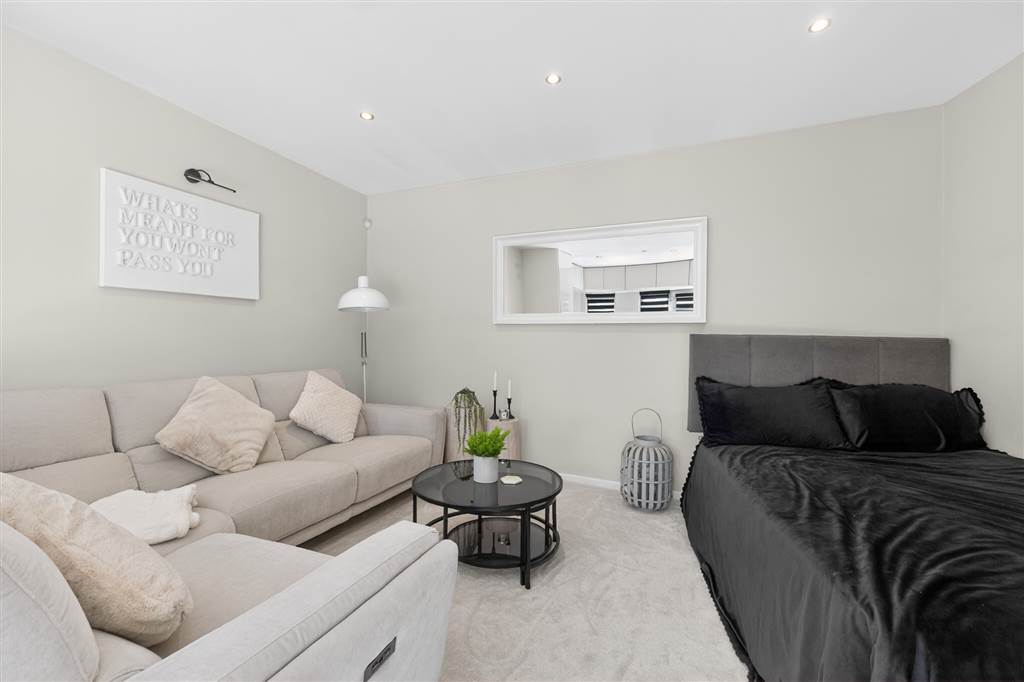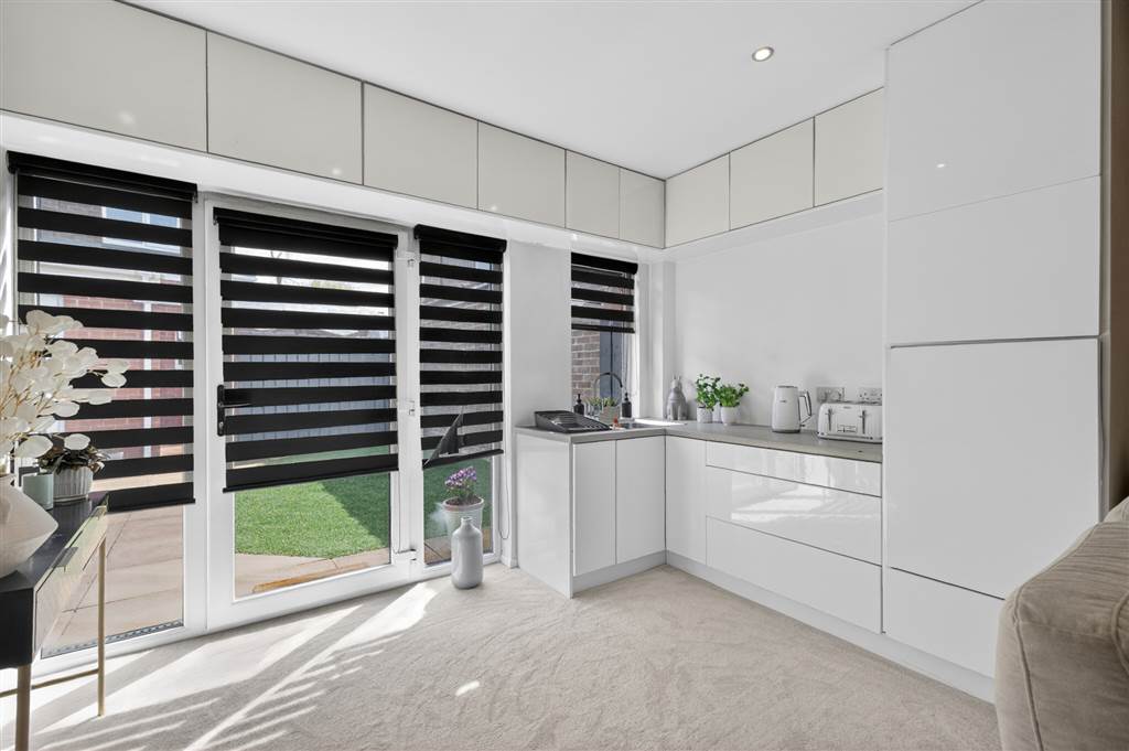 The garage has been converted into a chic studio with kitchen area and wet room. This multi functional area could be used as an entertainment hub, home office or hobby room.