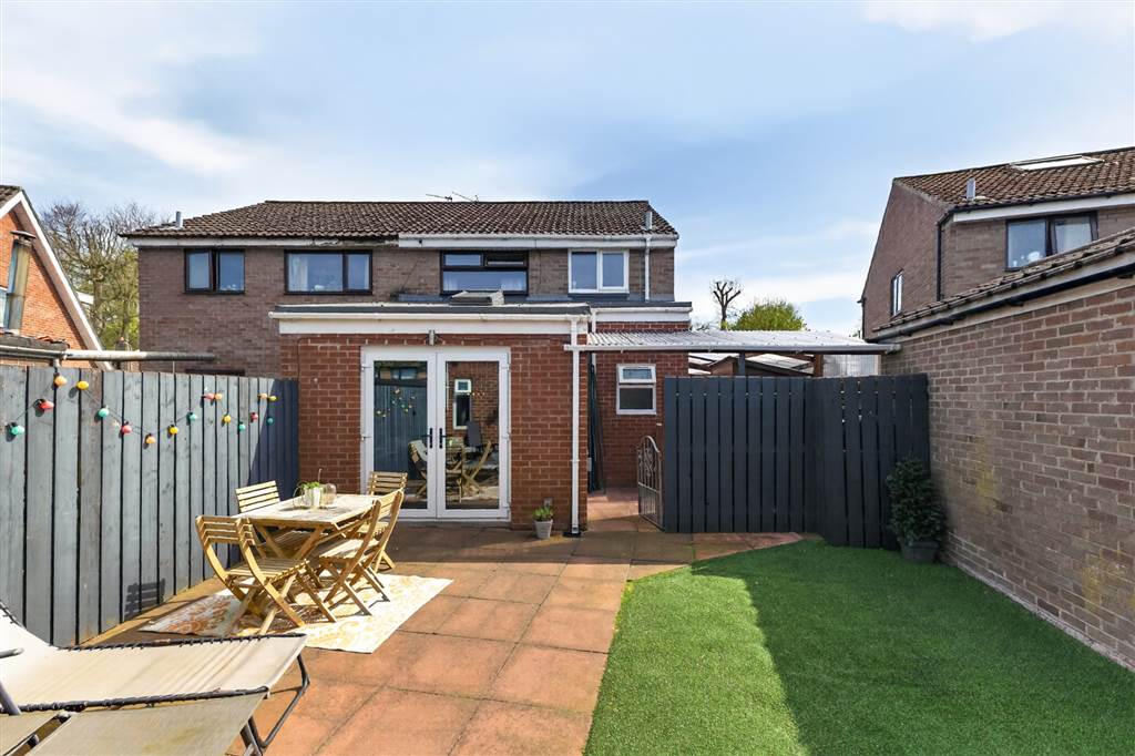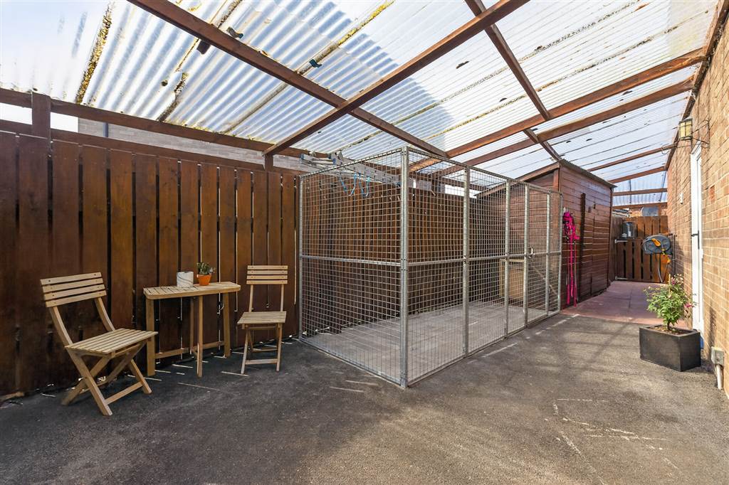 Tarmac driveway. Neat front garden in lawn. Completely enclosed low maintenance rear garden with artificial grass and pavers. Covered car port. Boiler house. Garden shed with plumbing for washing machine.