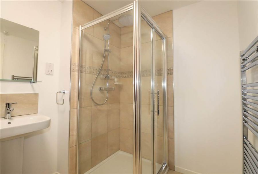 Modern Bathroom with Spacious Shower Cubicle and Mains Fed Shower, WC and Wash Hand Basin