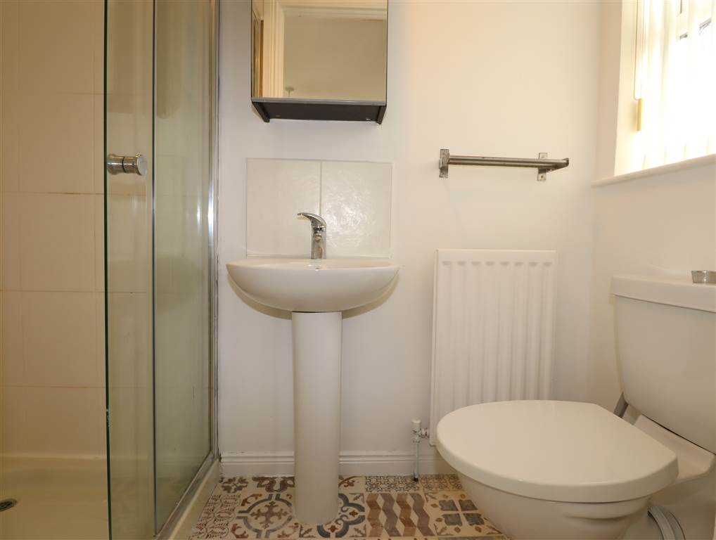 Upstairs, there are three well-proportioned bedrooms, including a master bedroom with its own ensuite shower room. The family bathroom is tastefully finished and includes a shower over the bath, catering to a variety of needs. The home benefits from gas heating and double-glazed windows throughout.