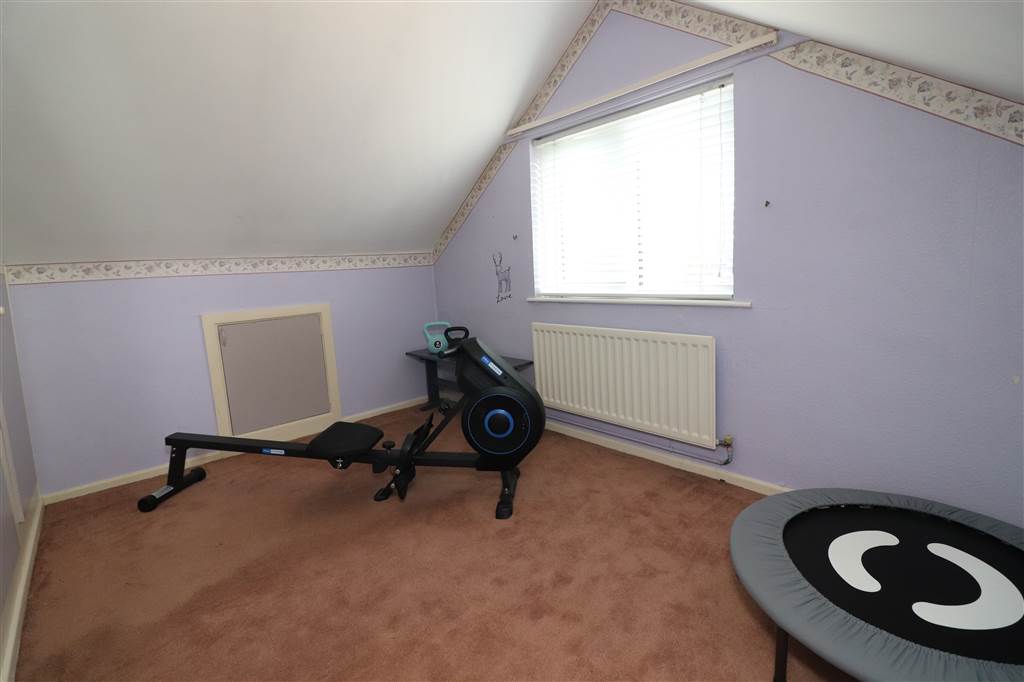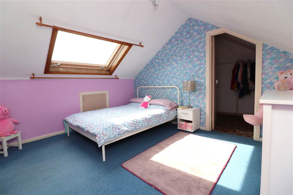 Access to eaves storage. Velux window. Walk in dressing room with desk.