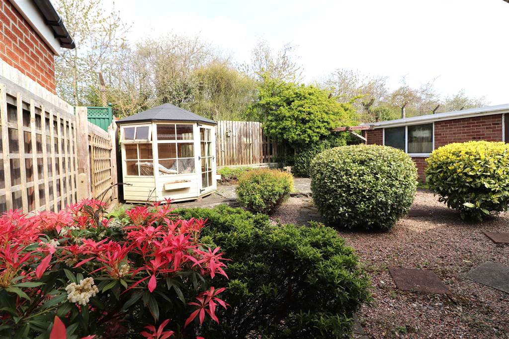 Tarmac driveway. Low maintenance front garden with mature shrubs. Completely enclosed low maintenance rear garden with mature shrubs. Covered patio area. Summerhouse. Outside store with light, power and plumbing for washing machine. Outside light and tap.
