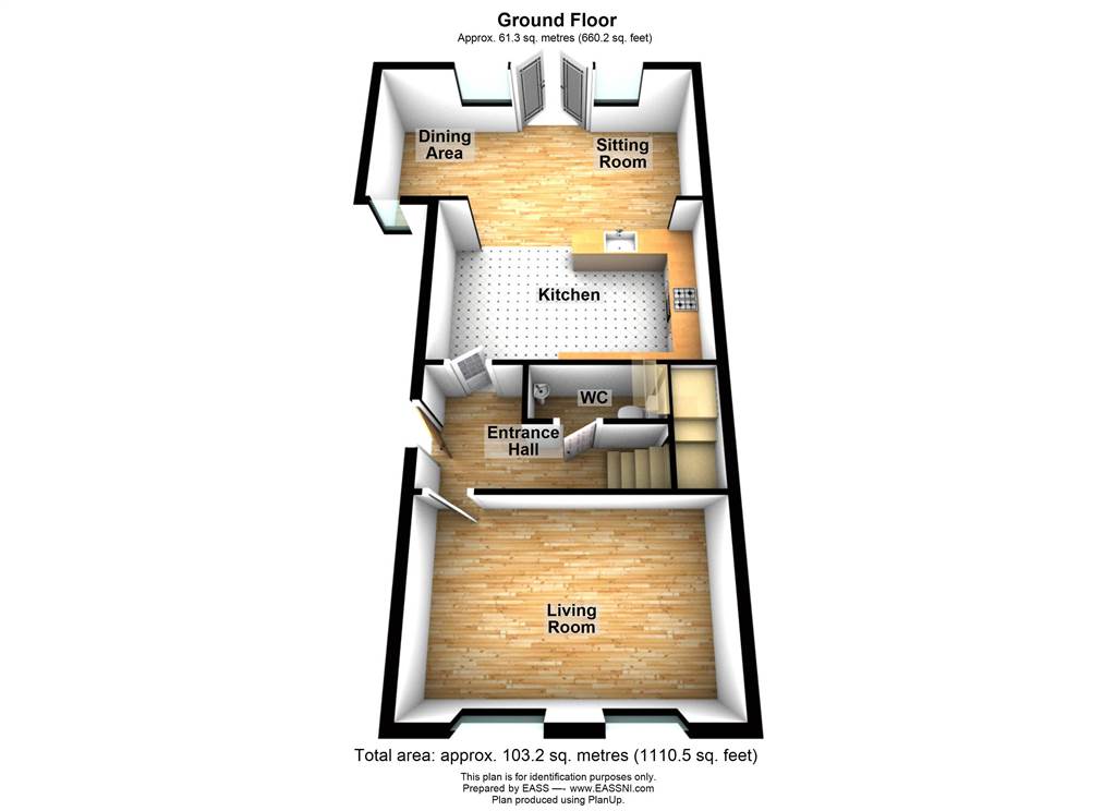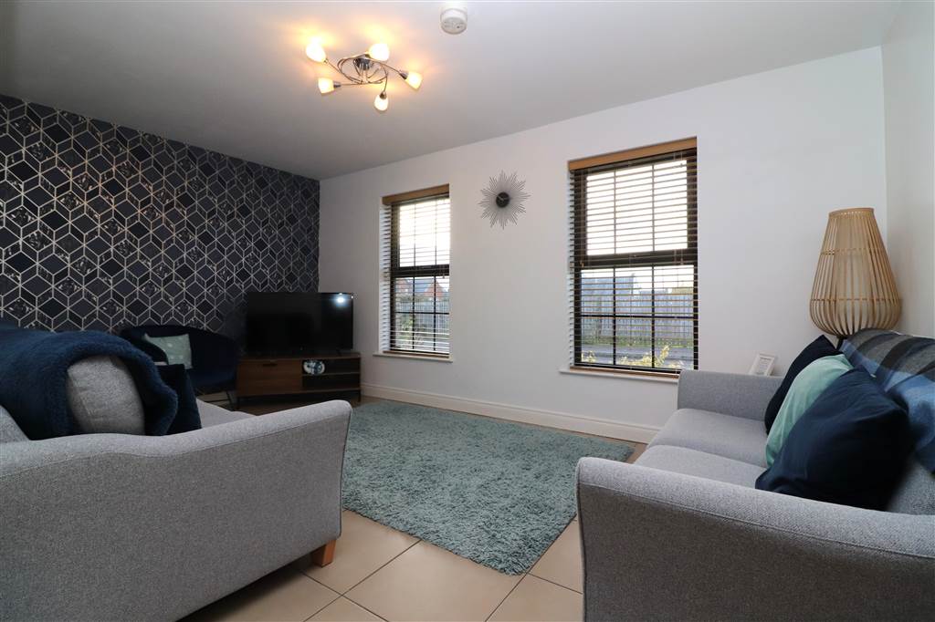 Laminate flooring. Recessed lights. UPVC french doors to rear patio.