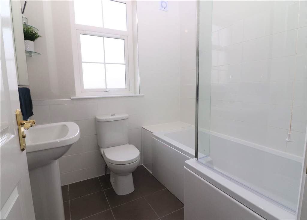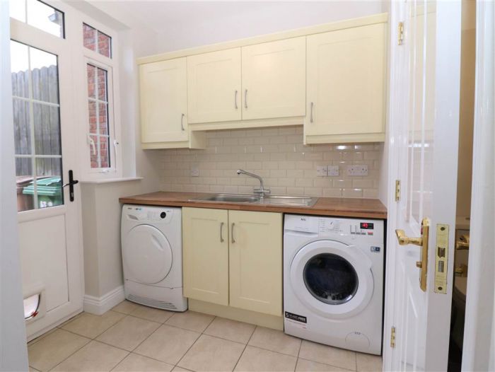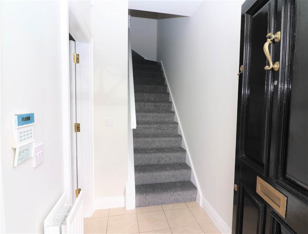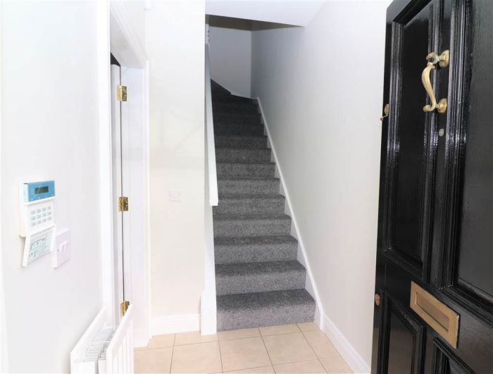 Entrance hall, sizeable lounge with feature fireplace and added bonus of an open fire, under stair storage cupboard, modern fitted kitchen with range of high and low level storage cupboards, dining area, utility room with cupboards and water facilities, ground floor WC room, 3 well pro-portioned bedrooms, master with fantastic walk in wardrobe, beautiful white bathroom with power shower over bath. Hot-press on landing. Security alarm system. Oil fired heating and uPVC double glazed windows, sash windows at front of property. Private parking for 2 cars at rear of property. Private enclosed garden to rear in lawn and patio. Communal area to front of property.