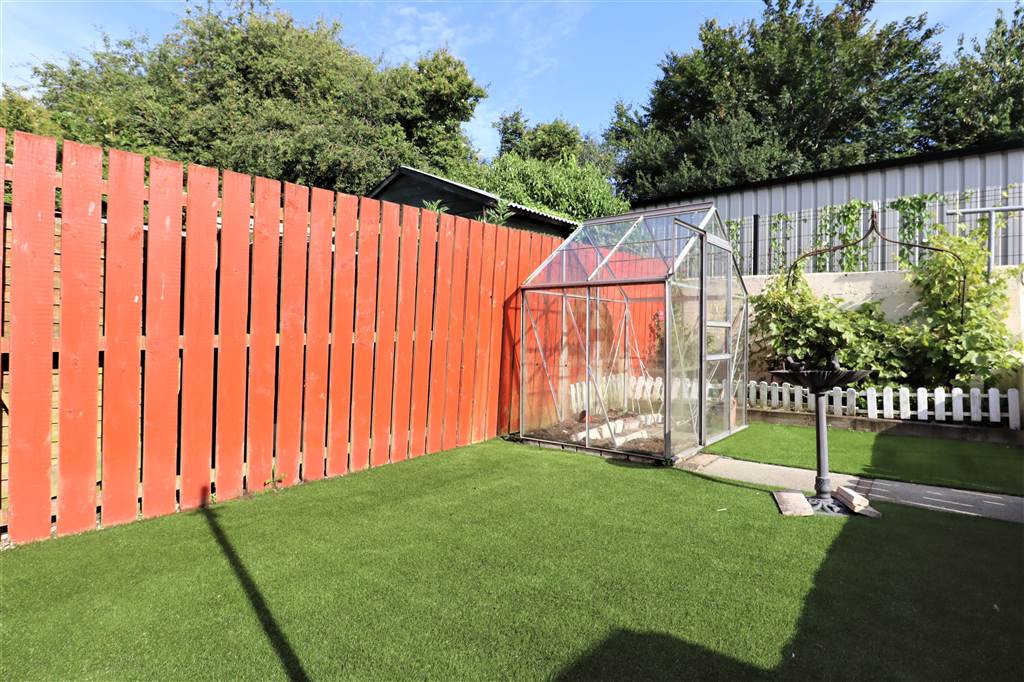 Enclosed Garden to Rear in Patio, Raised Area in Astro Turf and Small Green House, Garden Shed