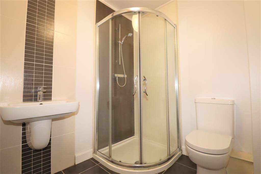 Modern Shower Room with Electric Shower, Wash Hand Basin and WC