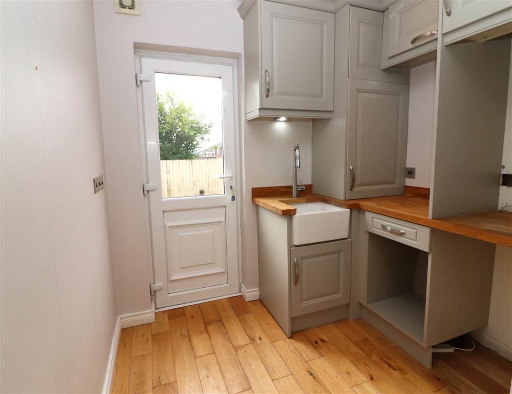 Range of high and low level units. Sink unit mixer taps. Plumbed for washing machine. Space for tumble dryer. Gas boiler. Extractor fan. Recessed lights.