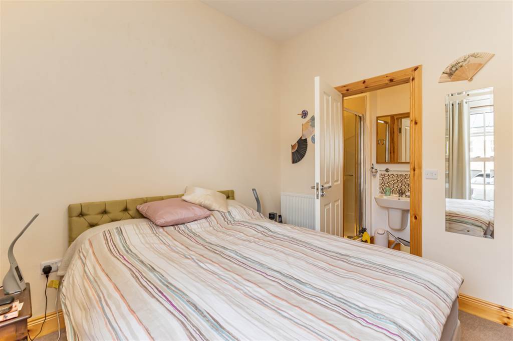 The property offers bright, spacious, and well-proportioned accommodation throughout, comprising a generous lounge with double doors leading to the rear garden, a modern fitted kitchen, master bedroom with ensuite shower room, a further double bedroom with built-in wardrobe, and a contemporary family shower room.