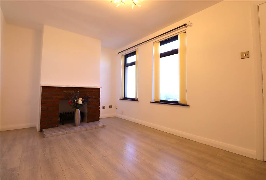 The property features a spacious lounge with an eye-catching feature fireplace, a contemporary kitchen equipped with a range of appliances, seamlessly flowing into a bright dining area. Upstairs offers a large master bedroom, a well proportioned second bedroom and stylish family bathroom.