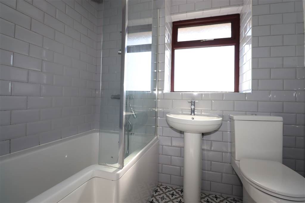 Modern Bathroom with WC, Wash Hand Basin, Bath with Mains Powered Shower Over
