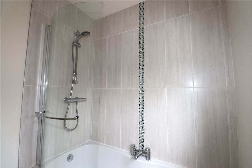 Family Bathroom Comprising Bath with Shower Over, Pedestal Wash Hand Basin, WC