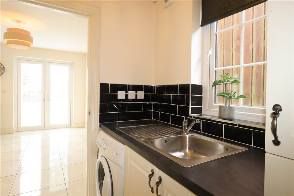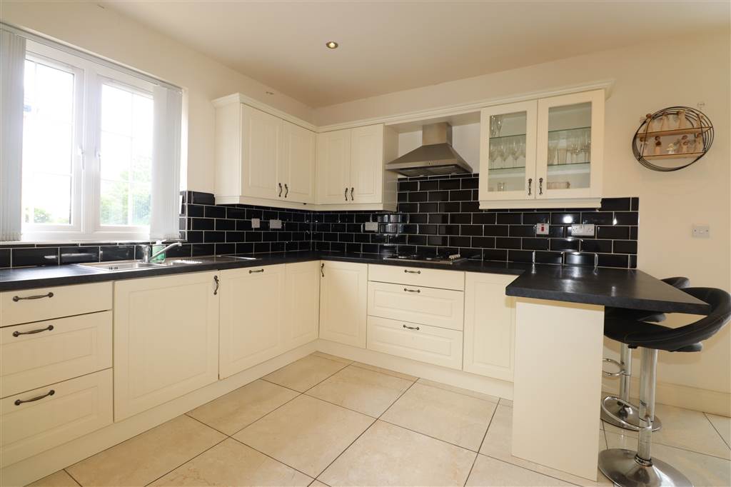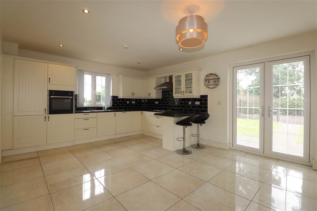 Large Kitchen with Full Range of Appliances, Breakfast Bar Opening Plan to Dining Living Area, Double Doors to Rear Garden