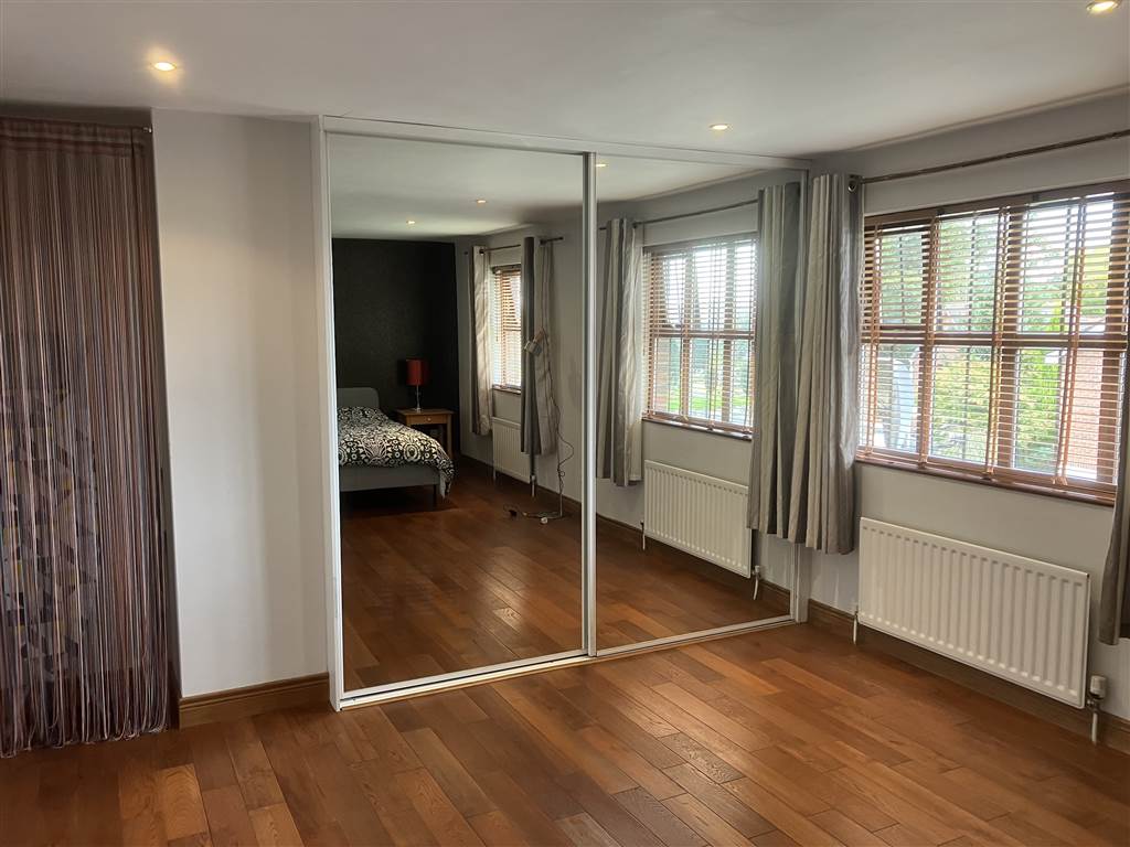 (at widest points) Wall to wall mirrored wardrobes. Built in cupboard. Recessed lights. Solid wood flooring.
