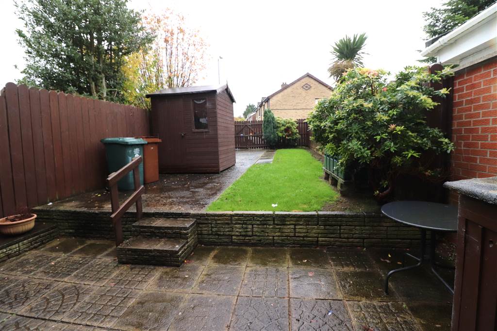 Off street parking to the front. Low maintenance front garden in pink pebbles. Completely enclosed private rear garden in lawn with paved patio area and vehicular access providing further off street parking. Garden shed. Outside light and tap.