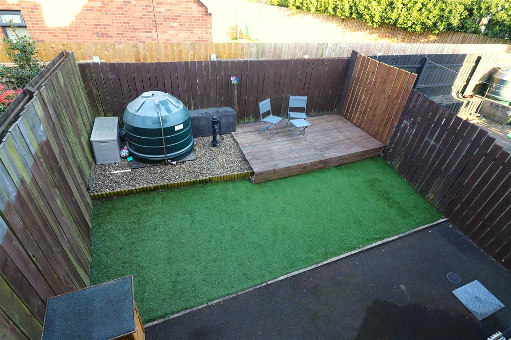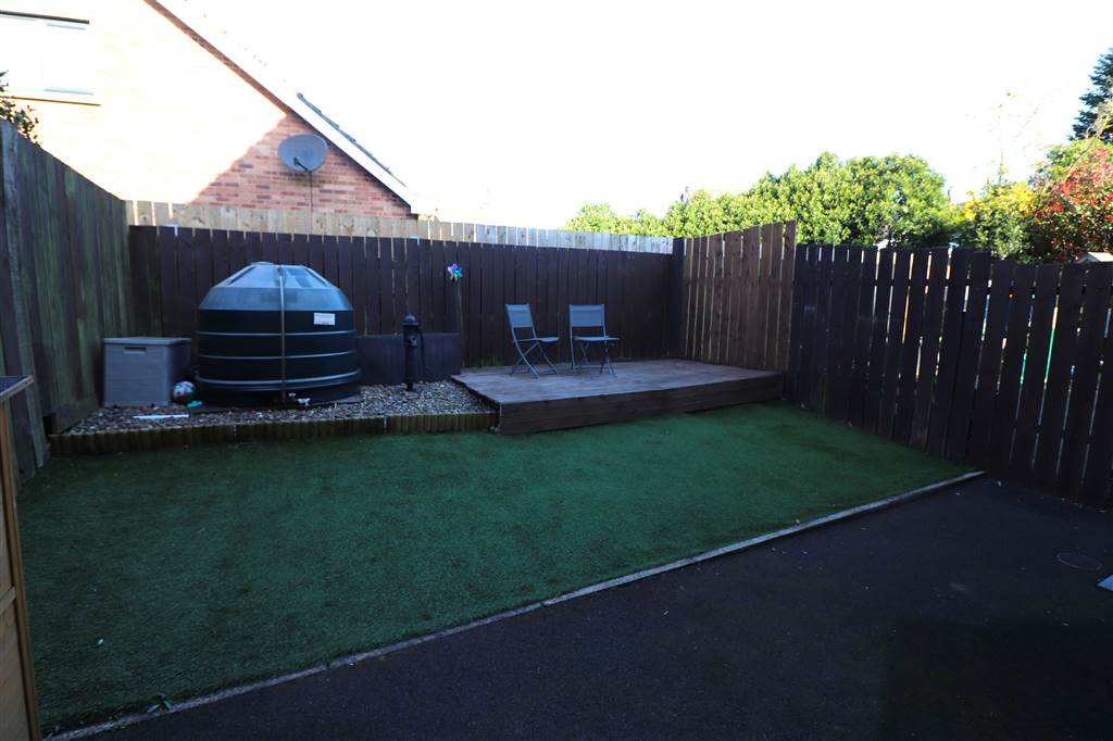 Brick paved off street parking to the front. Completely enclosed rear garden in artificial grass and decking. Outside light and tap. Oil tank. Oil fired boiler.