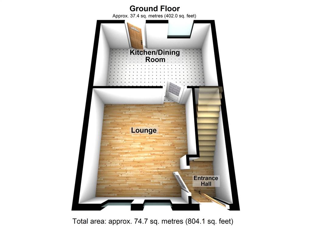 The ground floor consists of a relaxed lounge with open fire and spacious kitchen with dining area. Upstairs there are two large bedrooms and a contemporary bathroom.