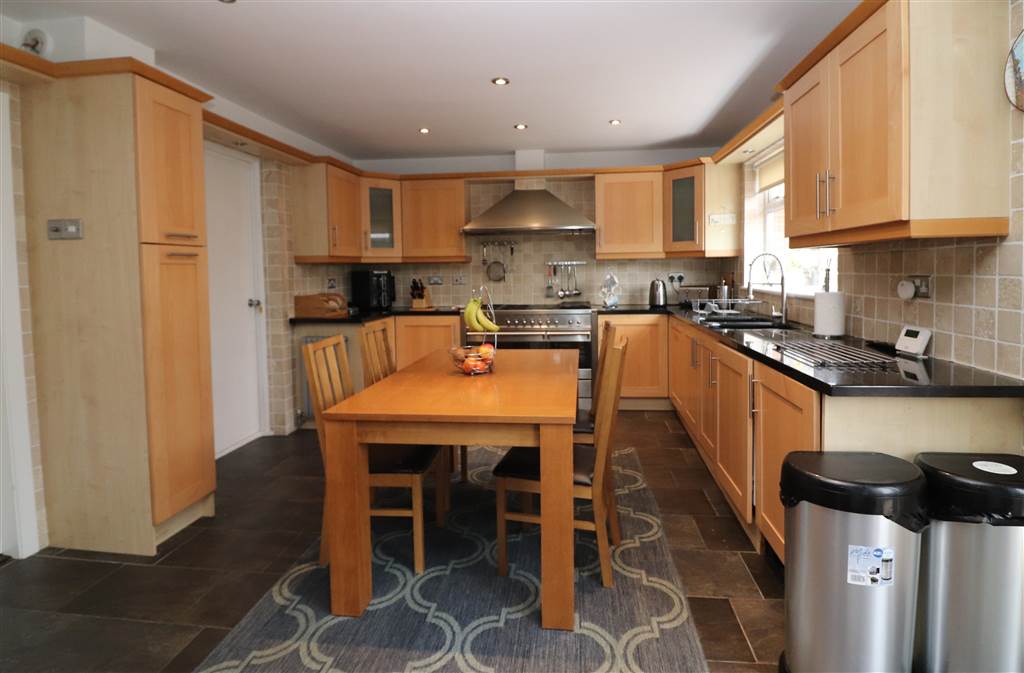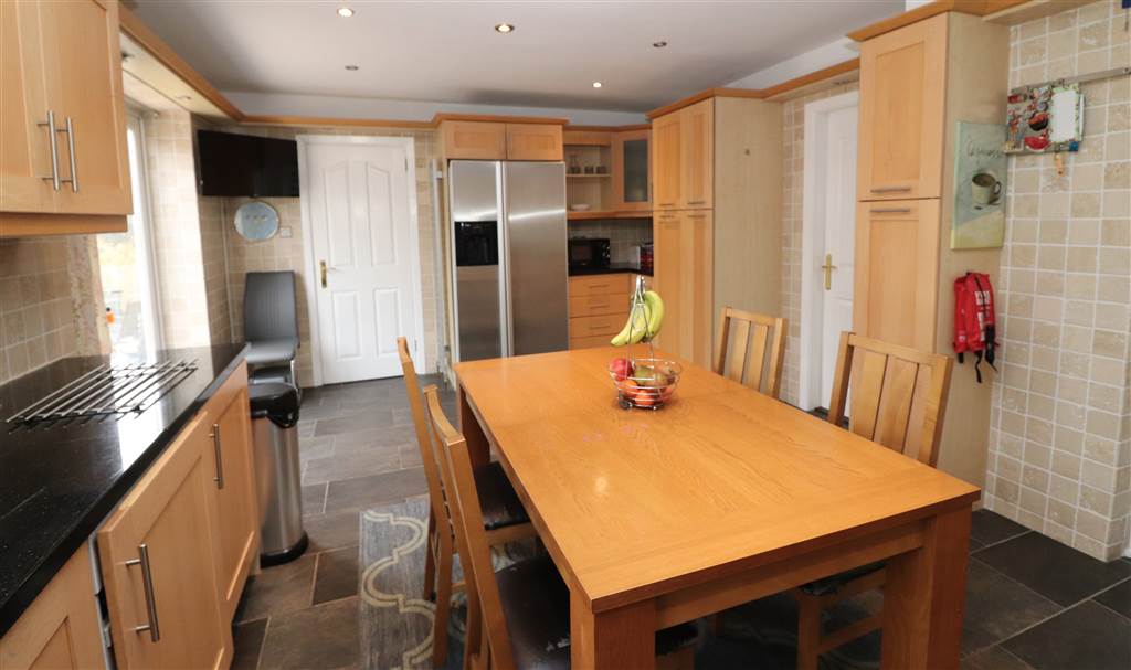 Excellent range of high and low level units with granite worksurfaces. Space for range cooker and American style fridge/freezer. Integrated dishwasher and washing machine. Double drainer sink unit with mixer taps. Stainless steel extractor fan. Recessed lights. Part tiled walls. Tiled floor. UPVC french doors to rear patio.