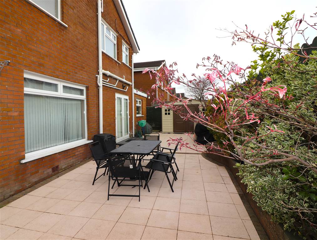 Brick paved driveway with parking for several vehicles. Spacious front and side garden in lawn with mature shrubs, flowers and trees. Completely enclosed low maintenance rear garden. Outside light and tap.