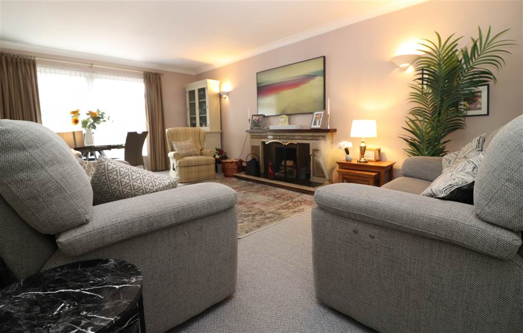 (at maximum points) Feature fireplace with open fire. Wall lights. Coved ceiling. Understairs storage cupboard.