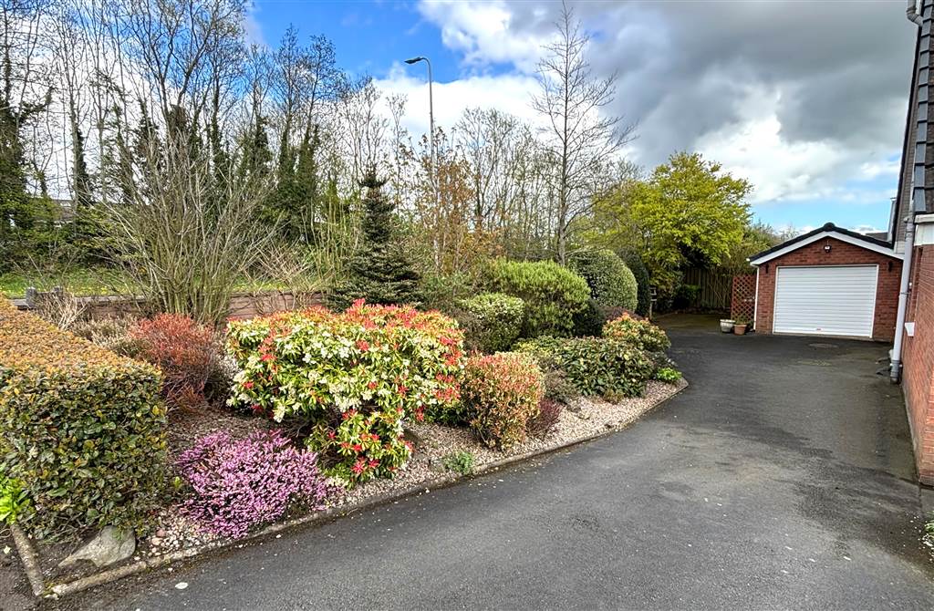 The property enjoys a generous corner site providing extra parking, mature front and side gardens, a low maintenance rear garden and useful detached garage.
