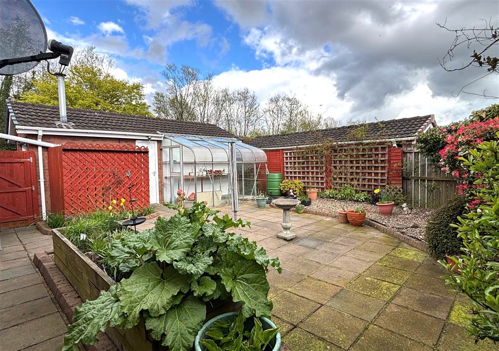 Front and side garden with mature shrubs and trees. Tarmac driveway with parking for several vehicles. Completely enclosed low maintenance rear garden. Oil tank. Outside light and tap. Greenhouse.