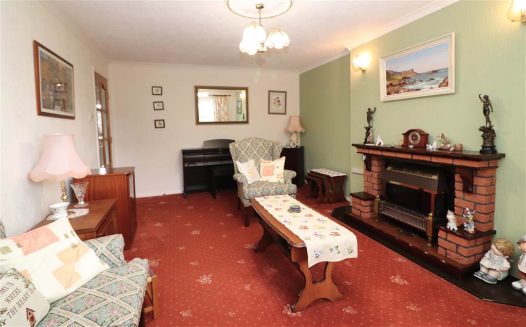 Feature fireplace with tiled hearth. Glazed door from entrance hall. Coved ceiling.