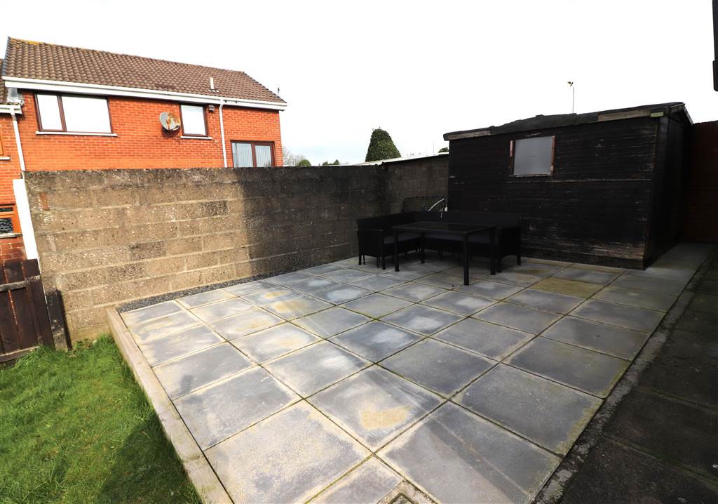 Neat front garden in lawn. Spacious enclosed rear garden in lawn. Large paved patio area. Outside light and tap.