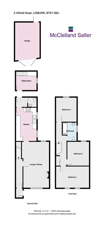 The accommodation extends to over 1,000 sq ft. On the ground floor there is a large lounge with dining area, kitchen with dining, cloakroom with WC and utility room. On the first floor there are three bedrooms and a refitted bathroom.