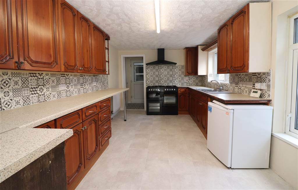 Good range of high and low level units. One and a half bowl stainless steel sink unit with mixer taps. Extractor fan. Beko range cooker. Breakfast bar.