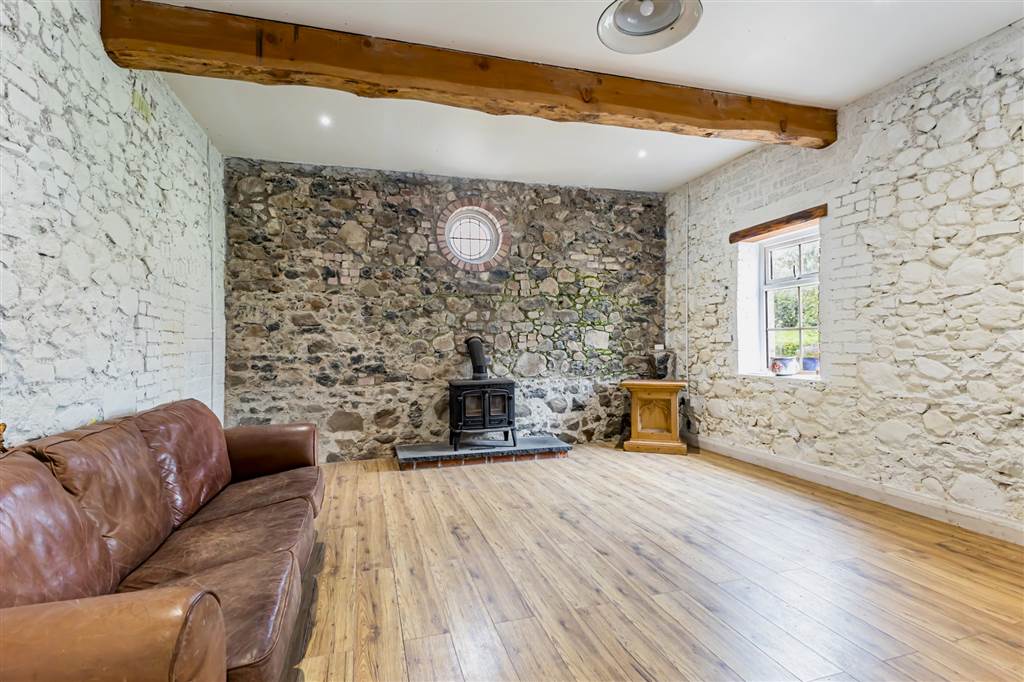 Feature multi fuel stove. Exposed ceiling beams.