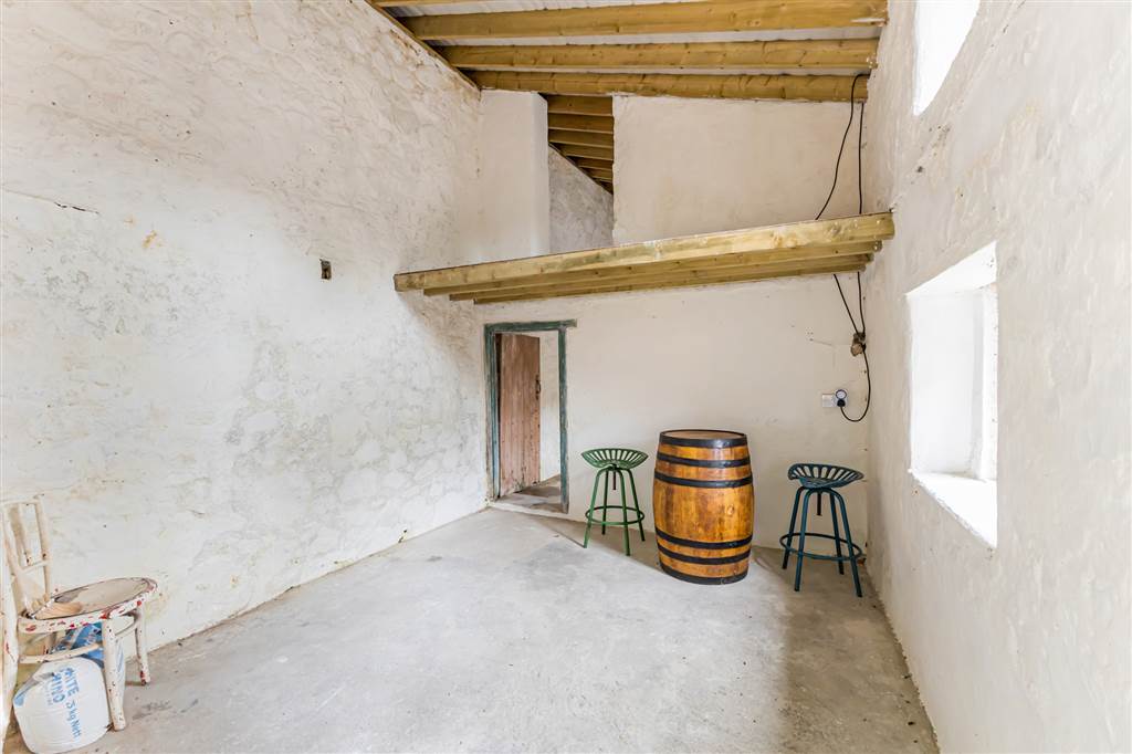 STONE OUTBUILDING INCORPORATIN GARAGE, WORKSHOP AND TWO ROOMS:
