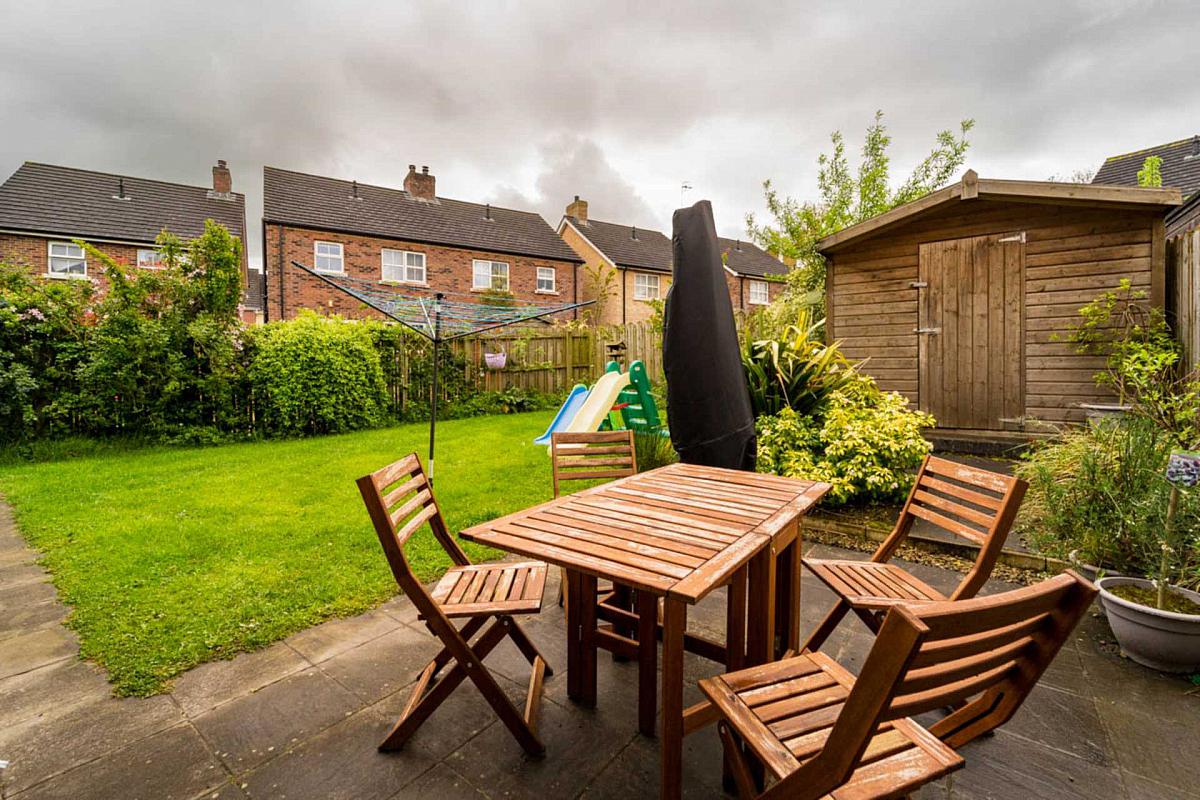 Outside: Cobble paved ample parking and driveway to front and side. Enclosed rear garden in lawn with cobble paved patio area, shrub bed borders and timber fence surround. Timber Shed. Light Tap.