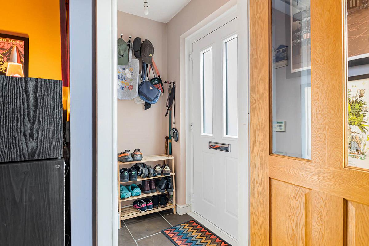 Part glazed entrance door. Tiled floor.