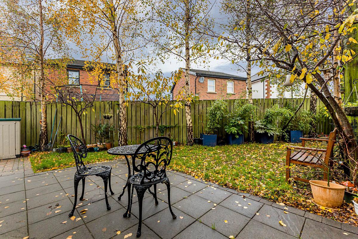 Outside: Fully enclosed rear garden laid to lawn with paved patio area. Timber fence surround and mature trees. Light and tap. Brick paved driveway to the side.