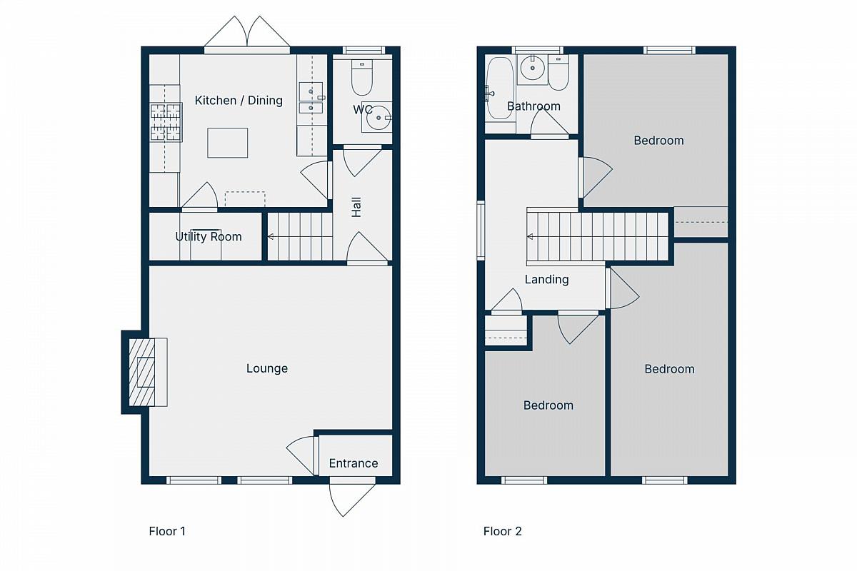 Accommodation Comprises: Reception Porch; Lounge/Dining; Inner Hallway; Cloakroom with wc; Kitchen with range of units and appliances plus understairs storage. First Floor: 3 Bedrooms, Bathroom.