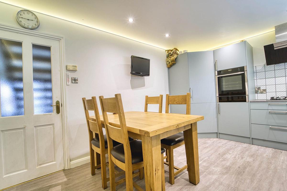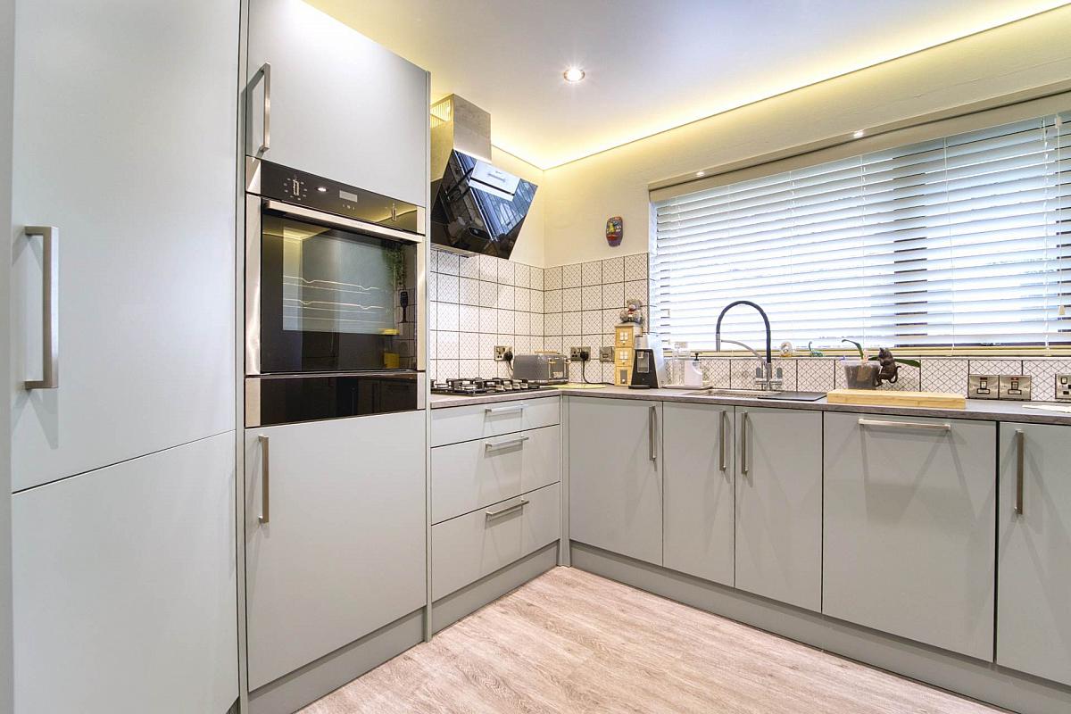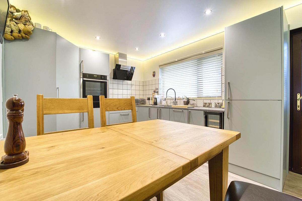 Refitted kitchen to include high and low level units. Built in oven, 4 ring gas hob, slim line dishwasher, integrated fridge/freezer. Larder cupboard. Sink unit with mixer taps.