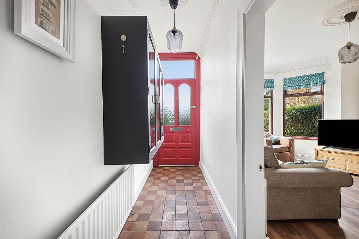 Part glazed entrance door with glazed top light over. Corniced ceiling and centre rose. Tiled floor.