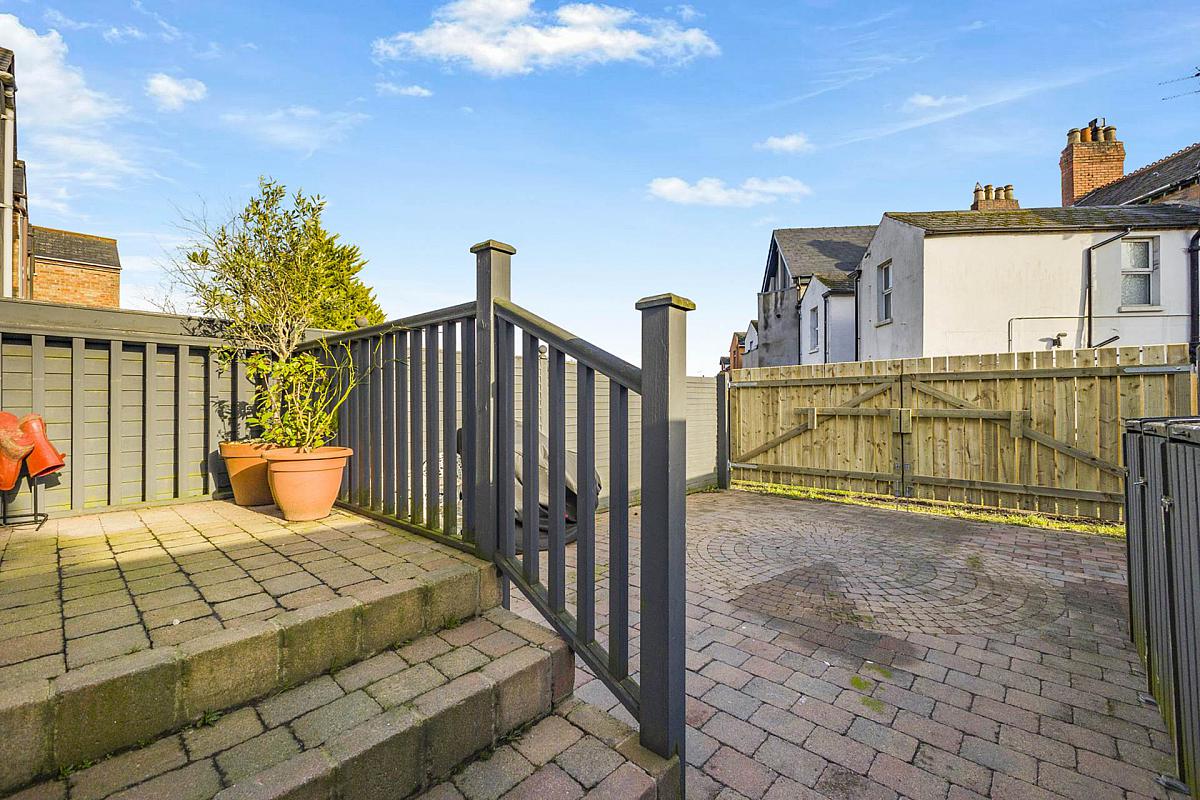 Enclosed cobble paved rear with timber fencing to sides and timber double gates to back boundary.