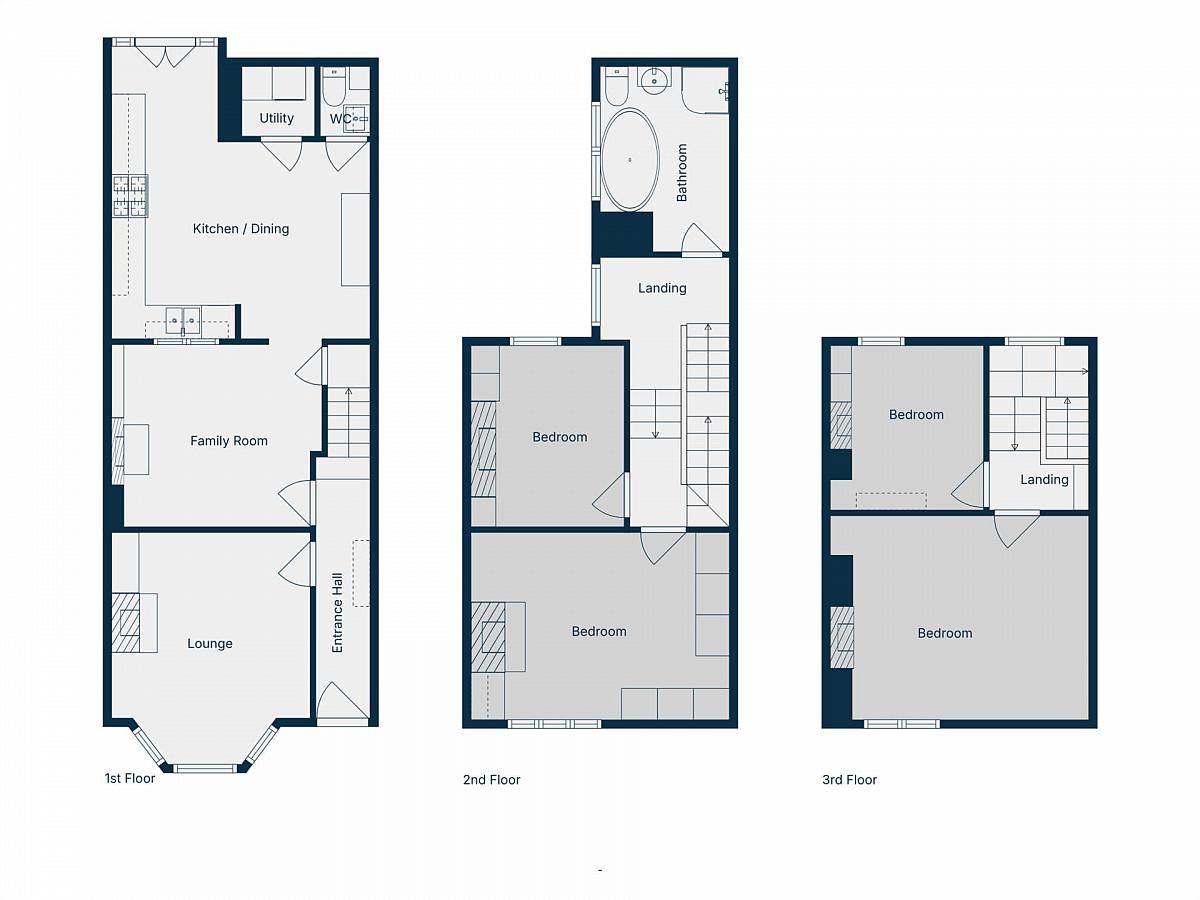 Second floor: Bedrooms 3 & 4.