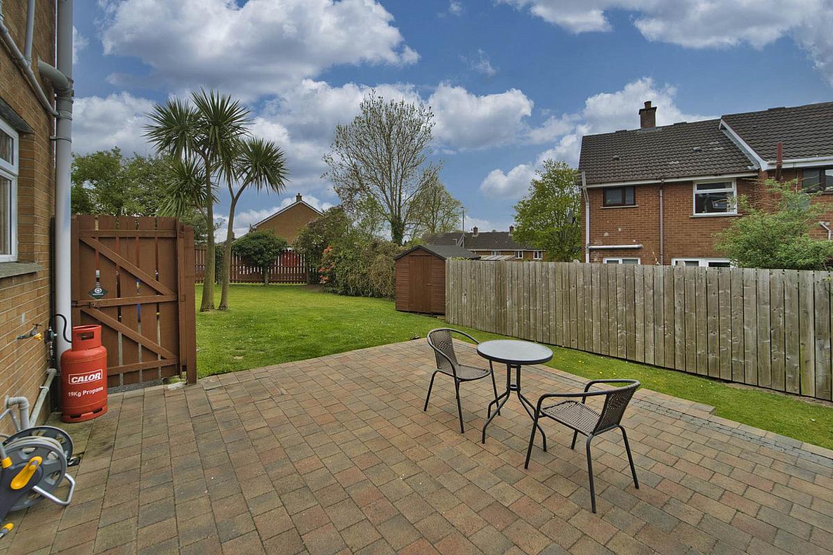 A tastefully presented and well appointed three bedroom end terrace home occupying a very spacious corner site with long tarmacadam driveway and extensive grounds.