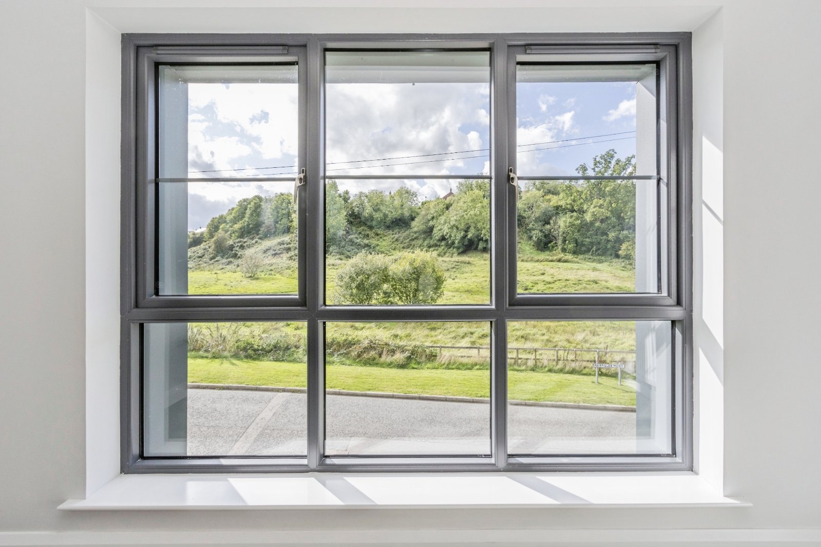 Luxury fitted range of units, laminate work tops, built-in oven and hob, fridge/ freezer, dishwasher, washing machine, inlaid sink unit., open plan, tiled flooring, under stairs storage. Gas Fired boiler. Views over green area. Laminate flooring.