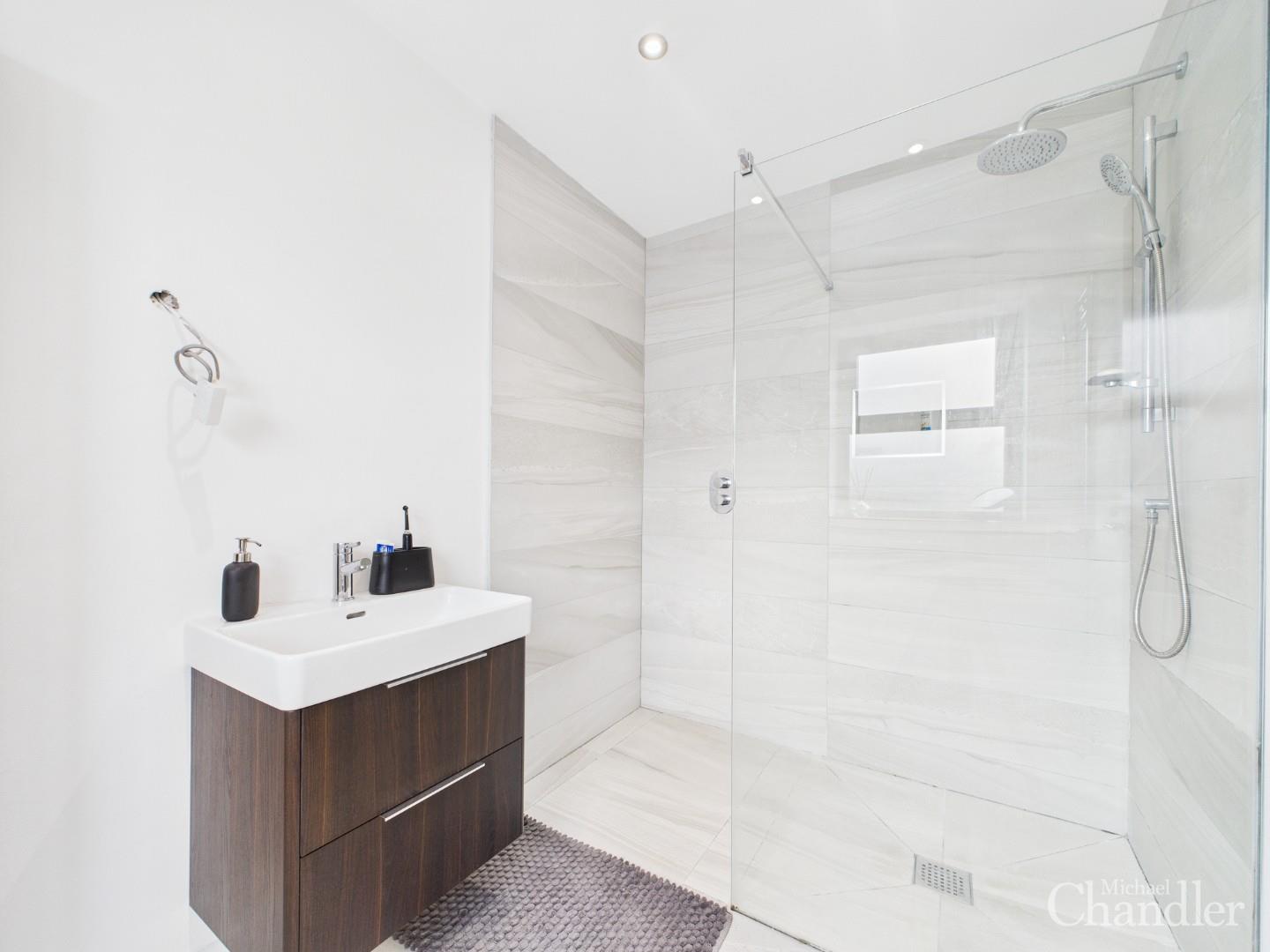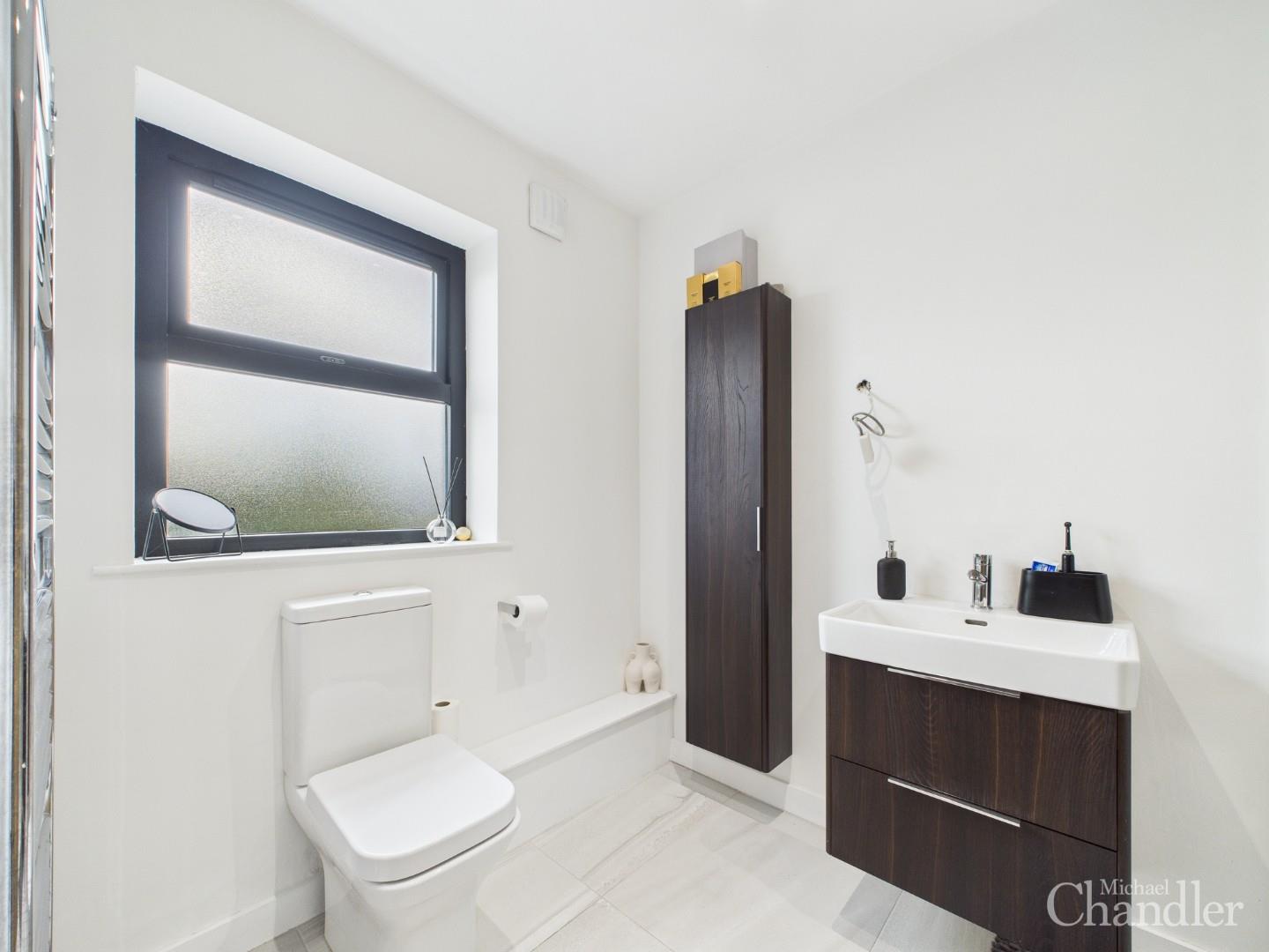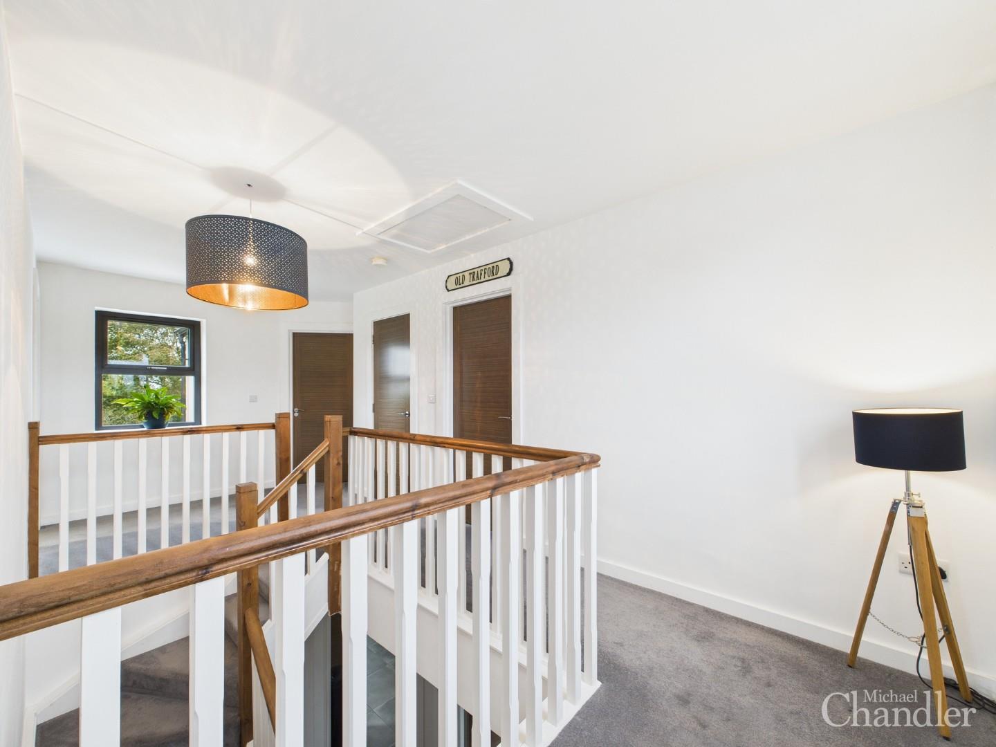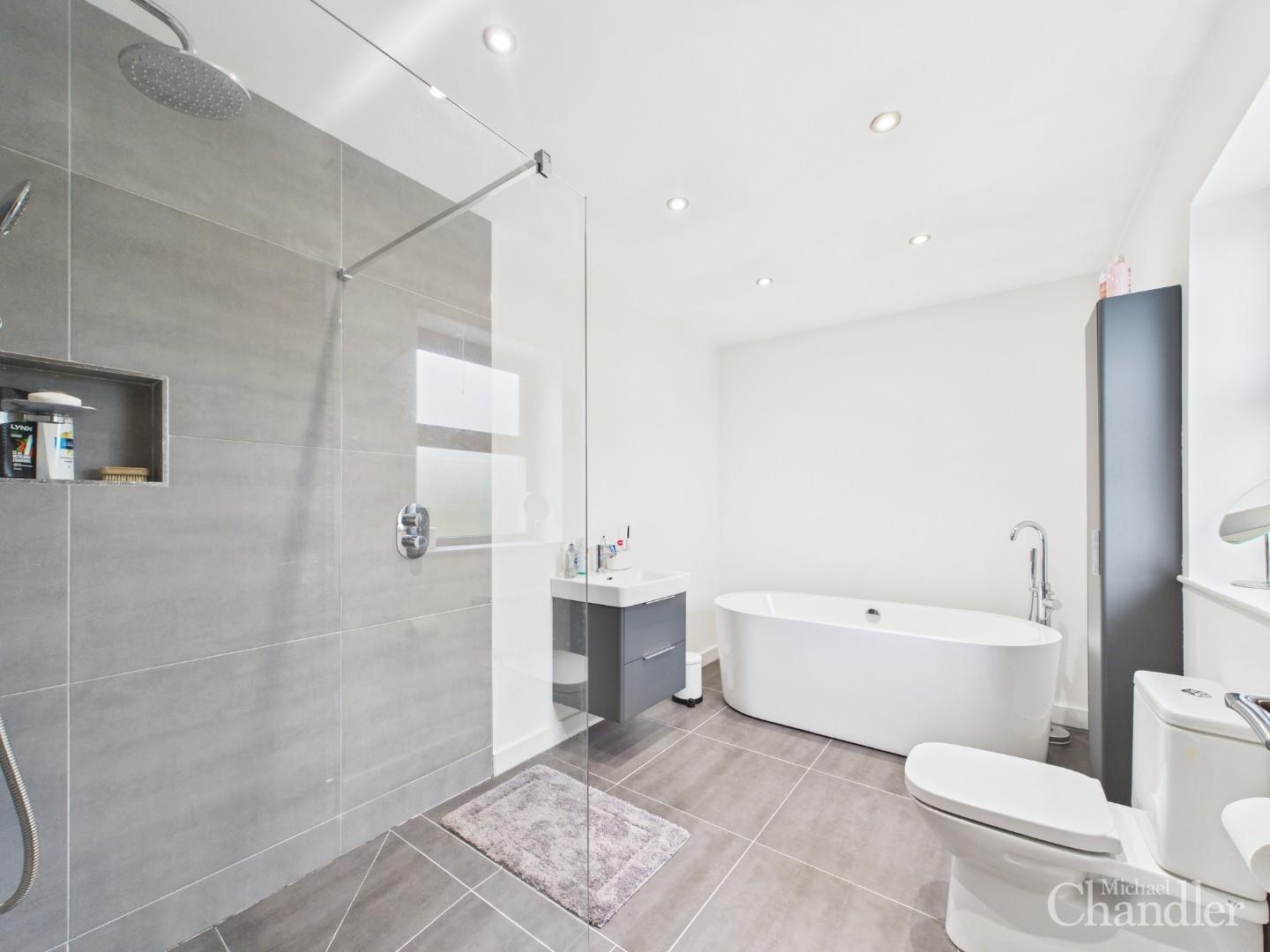 Upstairs, a generous landing area leads to the master bedroom, complete with a sleek ensuite shower room. Two further spacious double bedrooms and a luxurious family bathroom with a modern four-piece suite including a free standing bath completes the first floor accommodation.