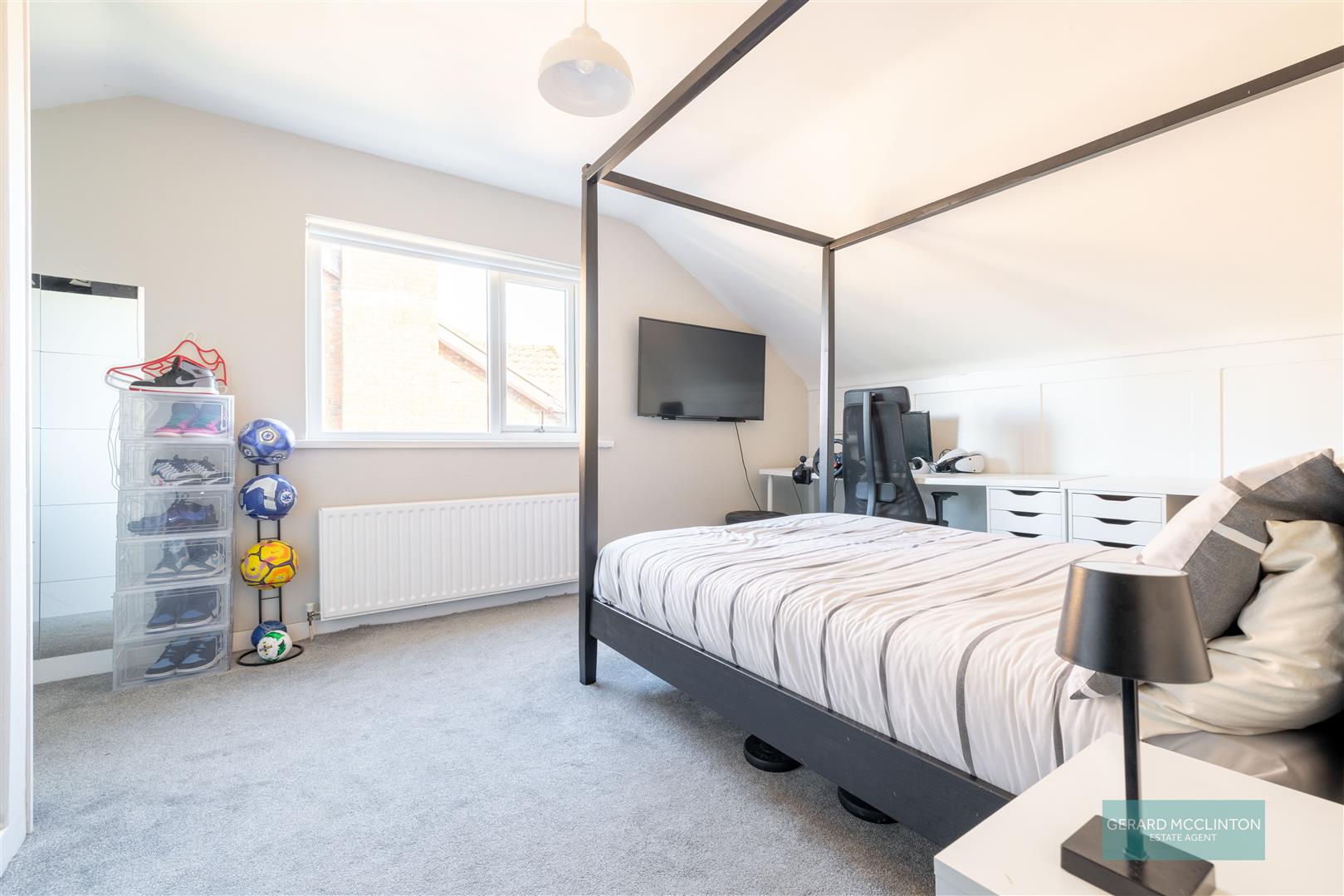 Upvc double glazed window, radiator, storage into eaves