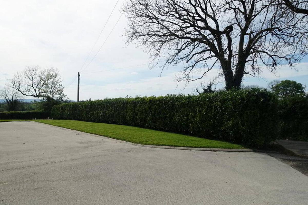 Concrete driveway and parking area to front and side. Mature grounds including mature laurel hedge to front, lawns to front and sides. South facing garden to side with paved patio area and vantage point to its wonderful outlook towards the surrounding countryside.